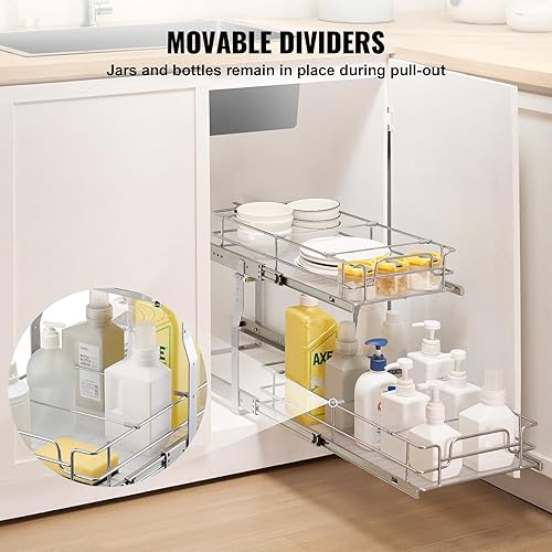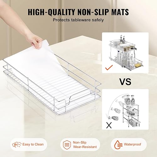 VEVOR Rangement sous Évier à 2 Niveaux 305x533x381 mm, Étagère Coulissante pour Placard en Acier Chromé, Organisateur Coulissant pour Cuisine, Taille d'Installation du Placard 343x558x457 mm