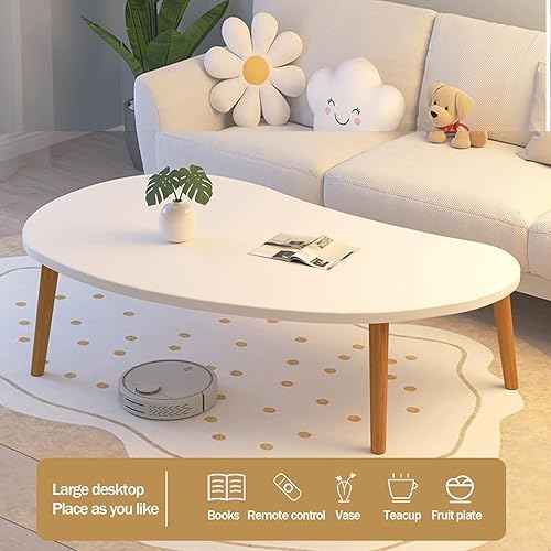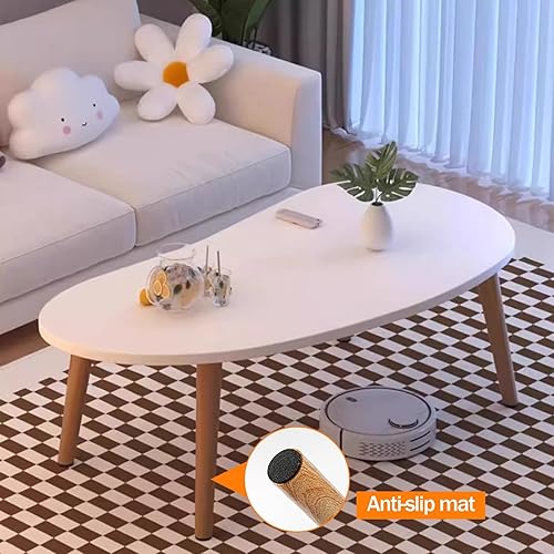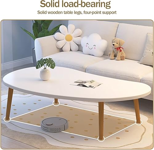 Table basse ovale en bois de chêne massif avec double rangement, table centrale pratique pour les petits espaces, idéale pour les appartements, les salons, les chambres et les bureaux 120 x 42 cm (L x