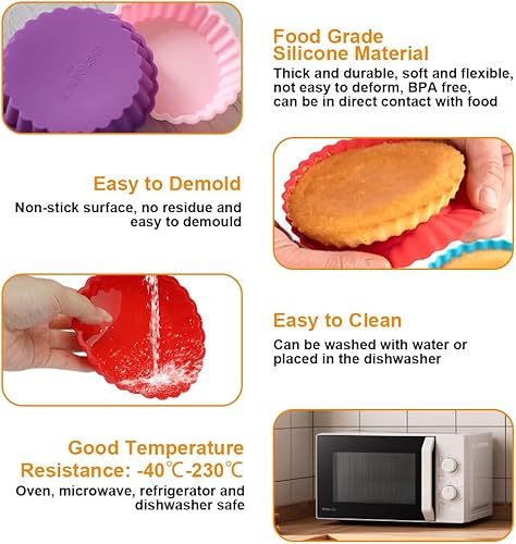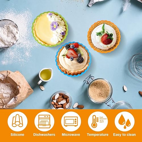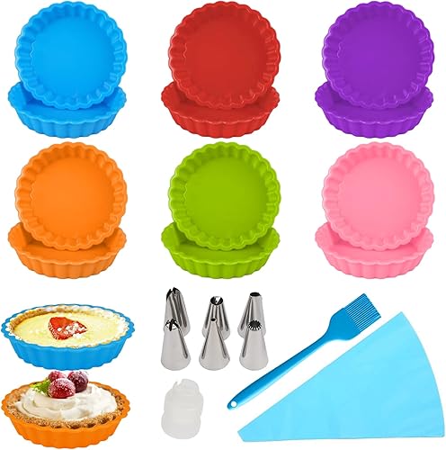 12 Pièces Moule à Tarte en Silicone 11 cm Avec Poche à Douille, Douilles et Pinceau - Antiadhésif Mini Tartelette et Quiche