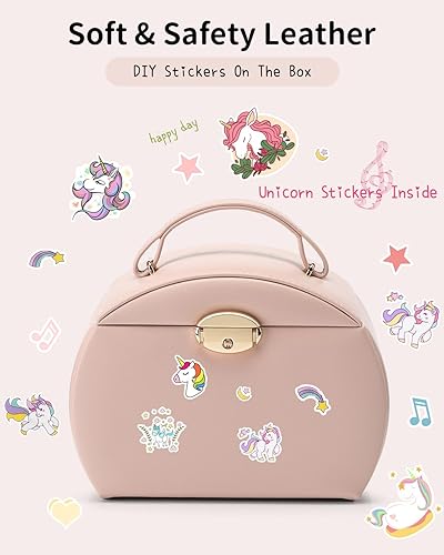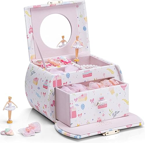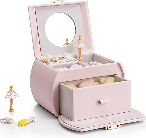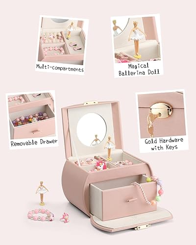 Vlando Boîte à bijoux musicale pour filles avec tiroir, boîte à musique avec ballerine et autocollants pour décoration de chambre d'anniversaire, rose clair