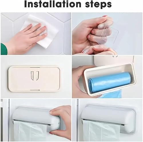 Generic Distributeur de sacs mural, étanche et auto-adhésif, Rangement pour sacs poubelle à accrocher, Pour cuisine, Grande taille, Blanc, Polypropylène, 18 x 6 x 6,5 cm, 648 ml
