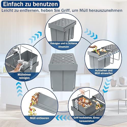 XINZI Poubelle de cuisine à 2 compartiments - 2 x 15 l - Système de tri sélectif encastrable - Poubelle avec extension complète