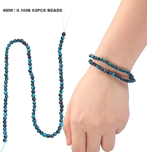 Perles d'Oeil de Tigre, 4mm 8mm Pierre Naturelle Bleue Ronde en Vrac Perle pour Collier à Faire Soi-Même Bracelet Fabrication de Bijoux(8mm (48 pcs/string))