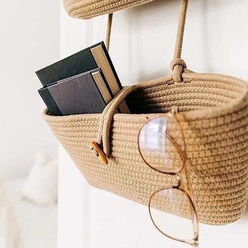 XQZMD Organiseur mural à 3 niveaux en corde de coton tissée avec crochets pour mur, salon, salle de bain, cuisine et chambre à coucher (jaune)