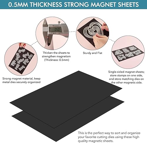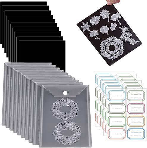 Lot de 10 pochettes de rangement en plastique transparent de 48 autocollantes et 10 feuilles magnétiques en caoutchouc souplepour matrices de découpe idéal pour le rangement de matrices de découpe