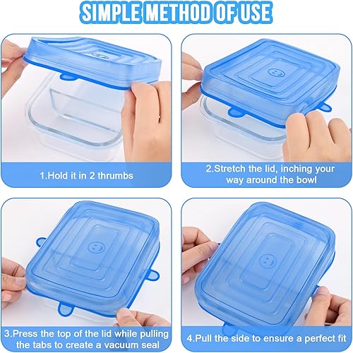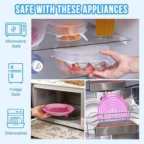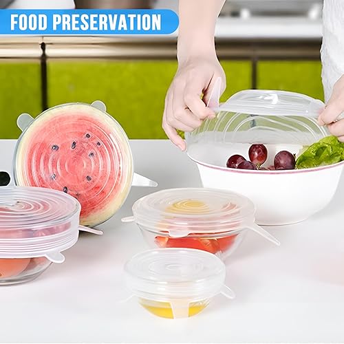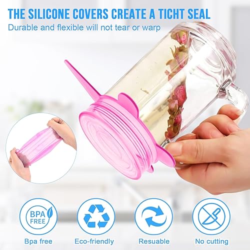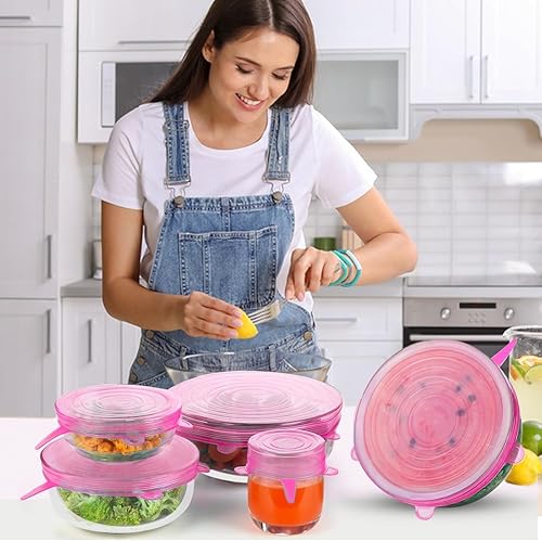PlsMupn Couvercle en Silicone Réutilisable 18pcs Couvercles Extensibles en Silicone Permanence Couvercle Silicone Alimentaire de 6 Tailles Differentes pour bocaux, bols,bouteilles