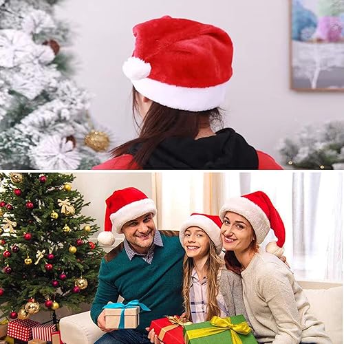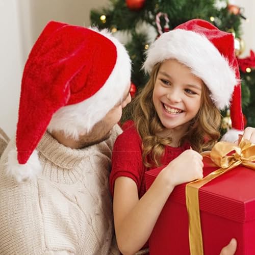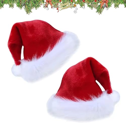 OUOQI 2 Pièces Bonnet de Noel,Chapeau de Noël Rouge,Bonnet de Noel pour Adultes,Chapeau de Père Noël,Noël Peluche Chapeau,Noël Chapeau pour Fête de Noël,Noël Chapeau pour Décoration de Noël