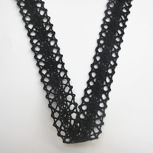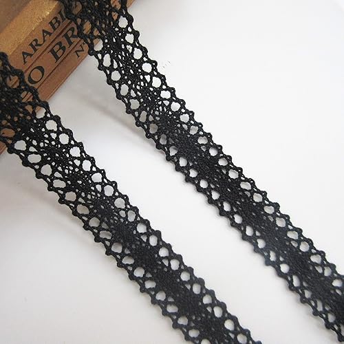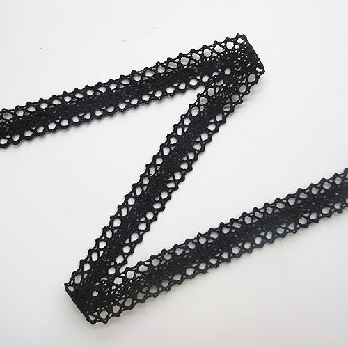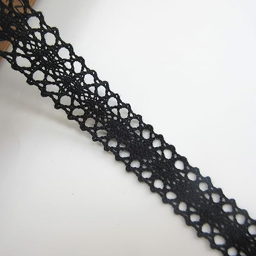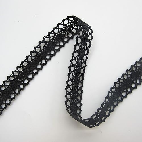 Ruban en dentelle au crochet de 10 mètres de long - 2 cm de large - Style vintage - Noir - Tissu brodé - Applique à coudre - Robe de mariée - Décoration de fête - Vêtements brodés