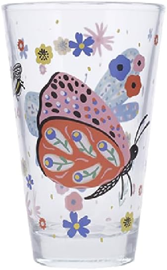 KIUB Grand verre avec une libellule et un papillon parmi leurs amies les fleurs d'été - 310 ml - hauteur 12,5CM