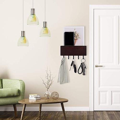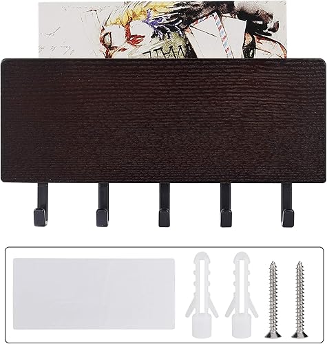 Tunejoy Range clé Mural Porte-courrier avec Crochets Porte clé avec Surface de Rangement pour mémos Lettres Prospectus pour Entrées Cuisine et Couloir Noix Noire