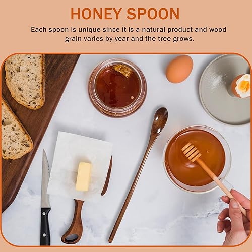 Mabor Lot de 2 longues cuillères à café en bois pour mélanger le café, le thé, la confiture, le dessert, le miel