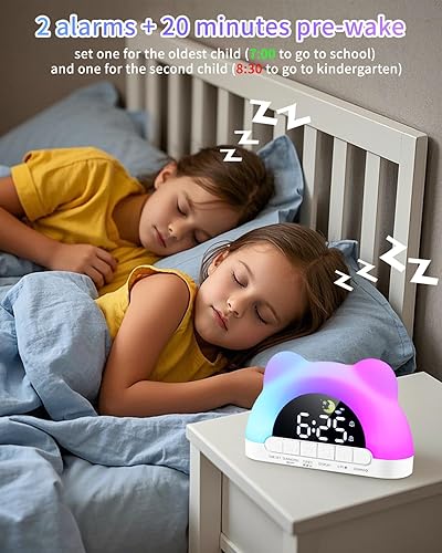 PERMUST Réveil Enfant Éducatif Jour/Nuit, Horloge Enfant, Réveil Lumineux