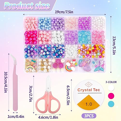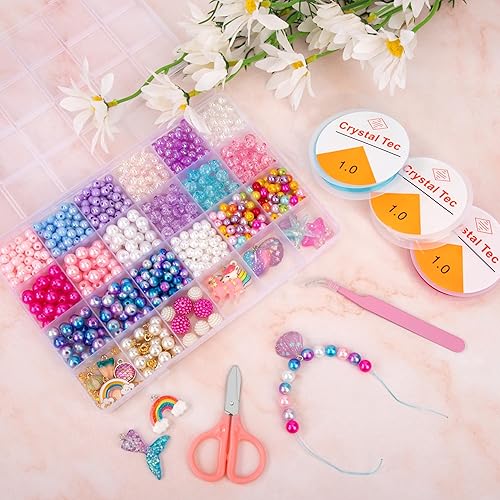Tunejoy Perles pour Bracelet, Enfants Bricolage Coloré Perles Set Collier Bague Kit Fabrication Bijoux avec Sirène Arc en Ciel Licorne Pendentifs Kit pour Filles Création Bijoux
