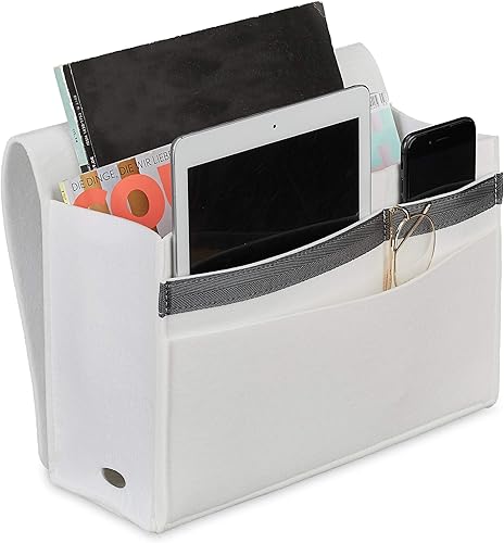 relaxdays Poche de lit, à Suspendre, Feutre, 6 Compartiments, Rangement, Organisateur HLP 27 x 31,5 x 11,5 cm, Blanc