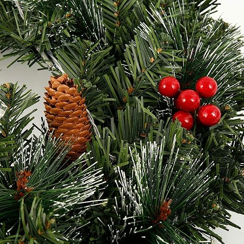 Guirlande Sapin Artificiel Nëol Lumineuse Vert avec Pomme de pin Fruit Rouge,Couronne Sapin Noël pour décoration Cheminée Porte Escalier (60CM, Couronne avec LED)