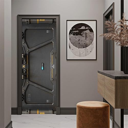 Stickers Porte Gris Poster Pour Porte Trappe de Vaisseau Spatial Sticker Porte PVC Imperméable Autocollants de Décoration pour Porte Murale Papier Peint Porte 77 x 200 cm A44