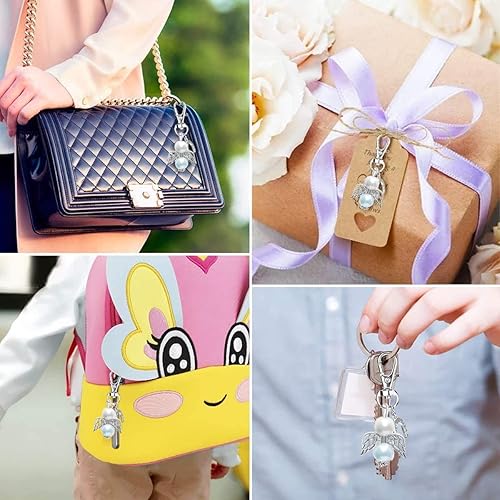 90 Pièces Pendentifs de Baptême Ange, Sachet Pendentif Bapteme, Ensemble Porte-clés Ange avec Sacs en Organza et étiquettes Kraft, Ange Gardien Porte-Clés pour e Mariage Communion Cadeau (90)