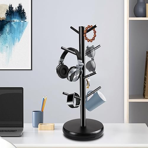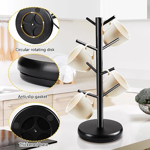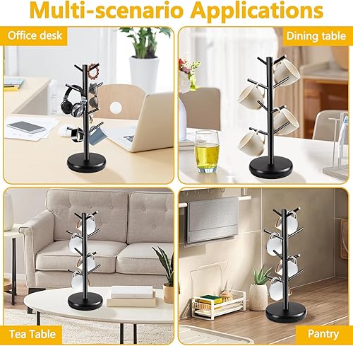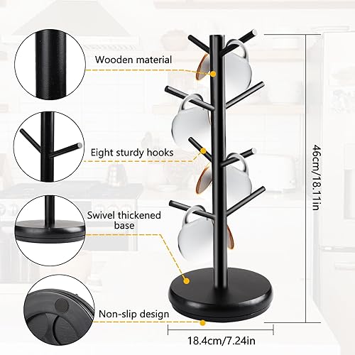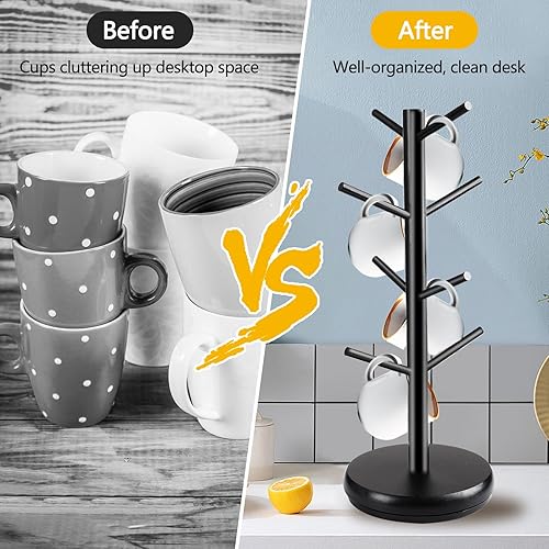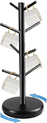 GeluEla Porte-Tasses, Arbre à Tasse, Support de Tasse a Café, 8 Crochets, Support à Bretzel avec Base Épaissie, Porte-Gobelet à Café, Porte Tasse pour Plan de Travail Armoire