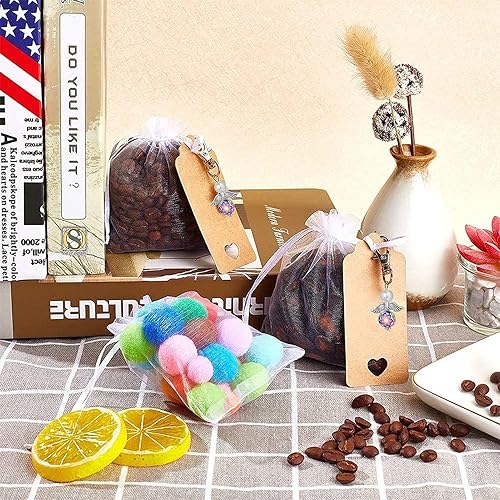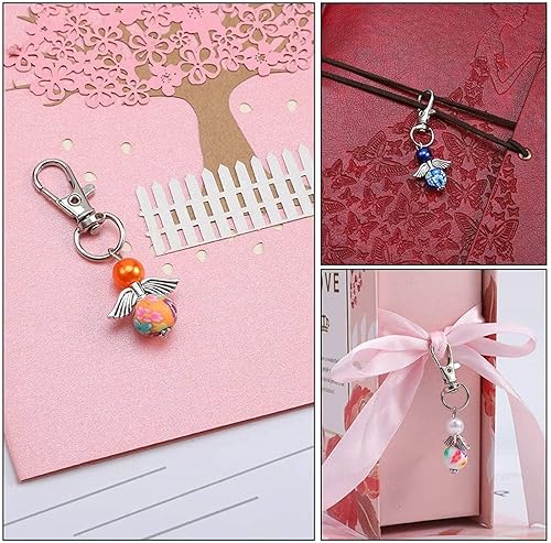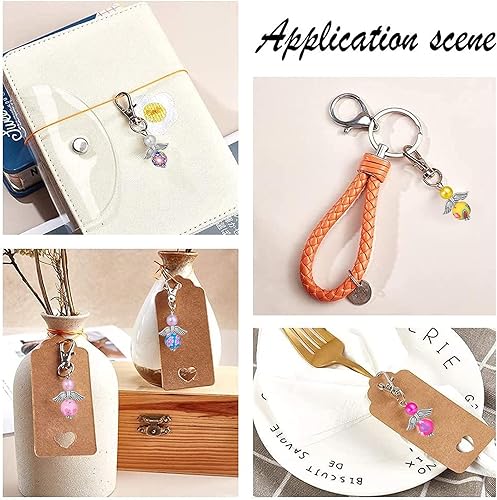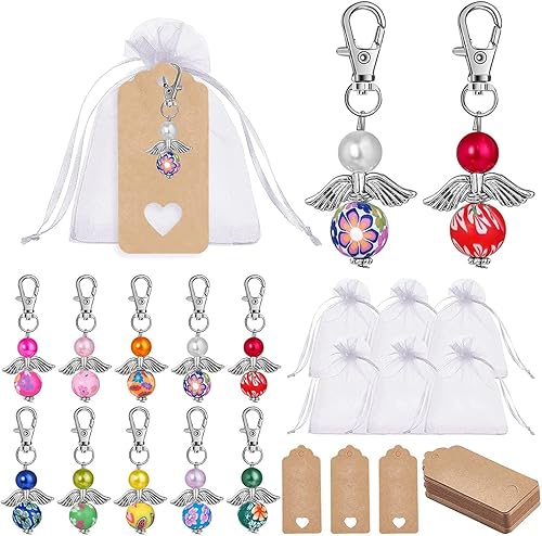 Ange en Perles Pendentifs,Porte-Clés Ange en Perles Ensemble,Ange Porte-ClésSacs En Organza,Étiquettes En Kraft,Cadeau Fête Mariage