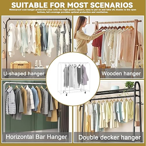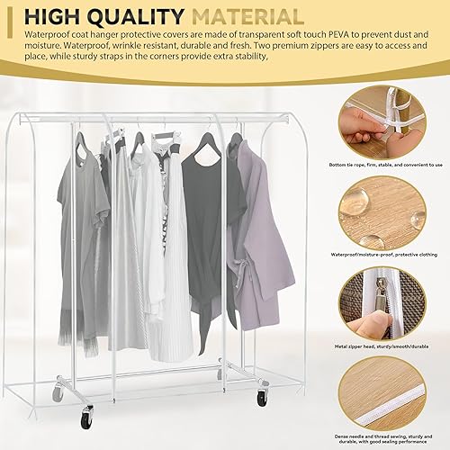 Housse de protection étanche pour porte-vêtements : sacs à vêtements translucides avec fermeture éclair, couverture transparente transparente pour porte-vêtements avec fermeture éclair (130 x 50 x 150