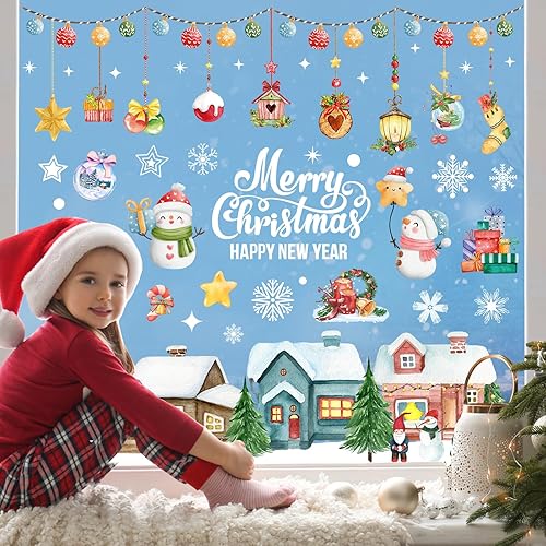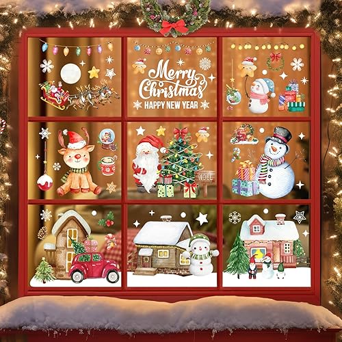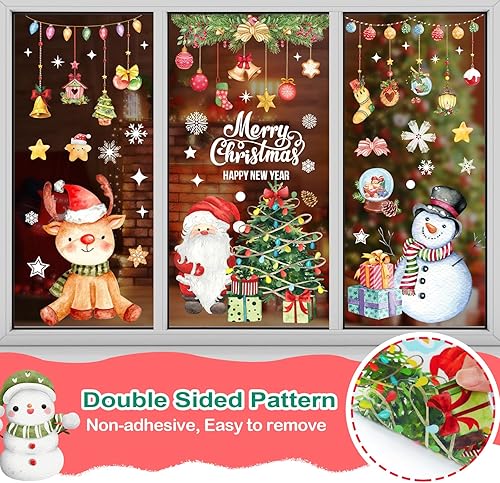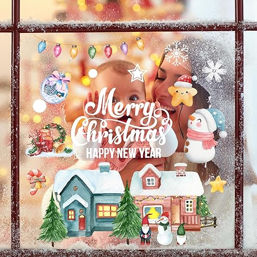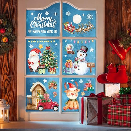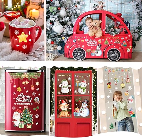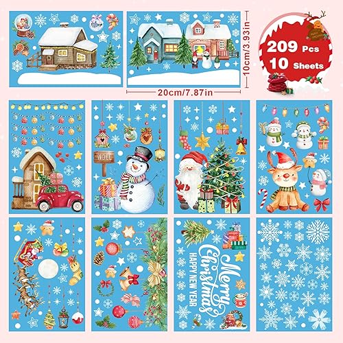 Vyntra 209 Pièces NoëL Autocollants Fenetre, Coloré Stickers Noel Fenetre Réutilisables Statiques PVC Autocollant Fenetre de Noël, Deco Noel Interieur Maison, avec Flocon de Neige, Renne, Étoile