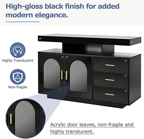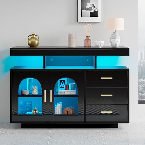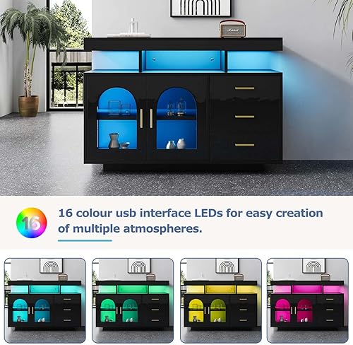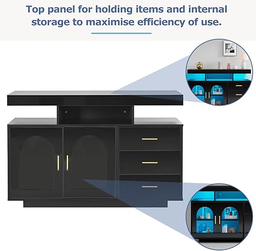 KOMHTOM Buffet de Salle à Manger Meuble de Rangement Blanc Meuble LED Meubles de Chambre à Coucher, Meubles de Salon Modernes avec Trois tiroirs Meubles de Salle à Manger (Blanc)