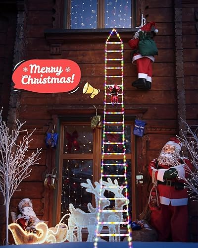 90Led RGB Échelle Lumineuse de Noël - 75*30CM Avec Père Noël, Décoration Colorée Pour Intérieur et Extérieur, Fenêtre, Jardin, Maison, Mur, Arbre
