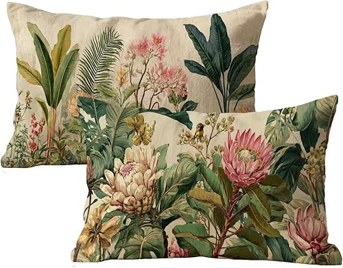 Housse Coussin 40x60 Usine Motif Impermeable Housse Coussin Vert Lin Taie d'oreiller Rectangulaire Decoration Taie d'oreiller Lot de 2 pour Lit Maison Salon Chambre Chambre Exterieur Jardin L-18