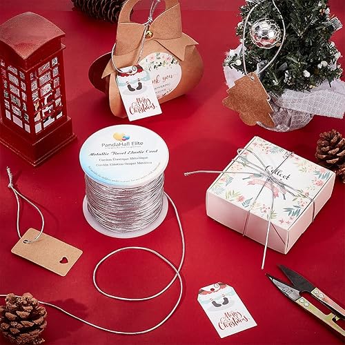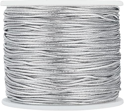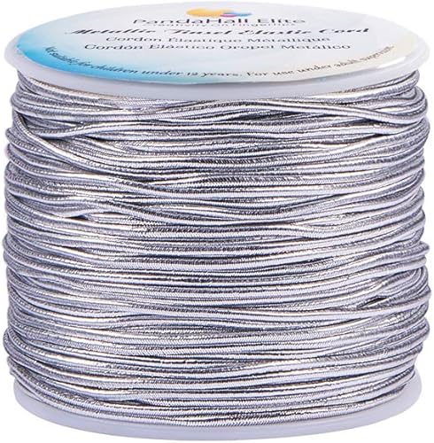 PH PandaHall 100m Cordon Elastique Rond Corde Elastique 1mm Fil Corde Argent avec Polyester Extérieur et Caoutchouc Intérieur pour la Fabrication de Bijoux
