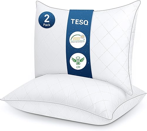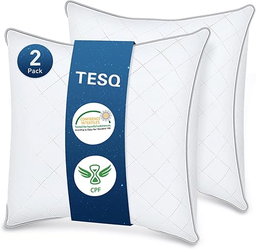 TESQ Oreiller 65x65 cm Lot de 2, Qualité Hôtelière de Luxe Oreiller Lot de 2 Oreillers Confort Moelleux, Respirant et Hypoallergénique Certifié Oeko-TEX, Adapté à Toutes Les Positions de Sommeil