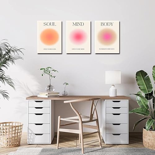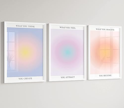 Enthusiasm Lot de 3 toiles colorées dégradées Aura Gradient Grainé Art mural Numéros Poster Aura Positive pour chambre Esthétique (30 x 40 cm)