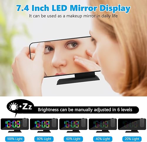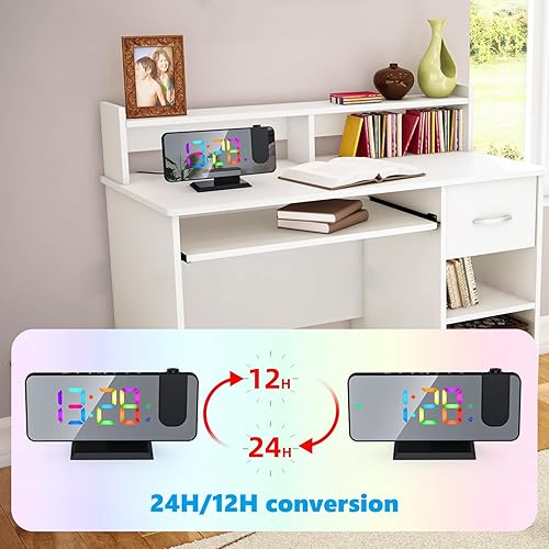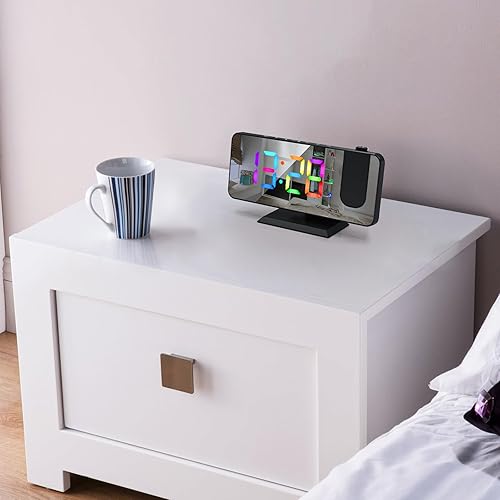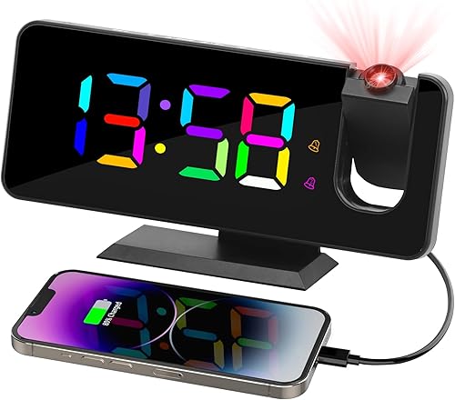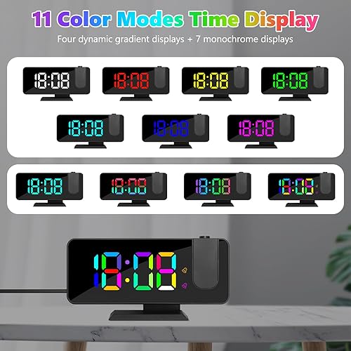 Réveil à Projection, Horloge Numérique LED Grand Écran, avec Projecteur Rotatif à 180°, Affichage des Chiffres RVB 11 Couleurs, 6 Niveaux de Luminosité, Double Alarme, Snooze, 12/24h, Horloge Digitale