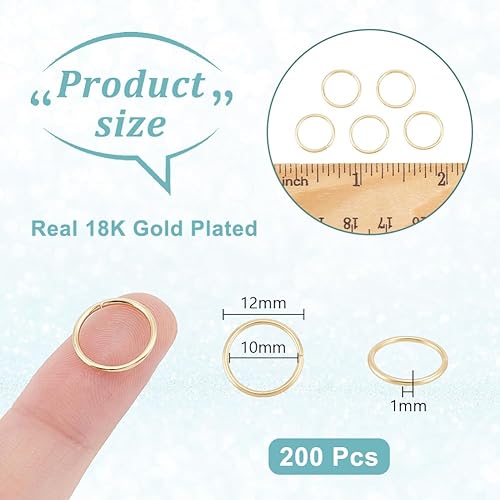 UNICRAFTALE 200pcs Anneaux de Saut Ouvert Plaqué Or 18 carats 12mm Anneaux Ronds Dorés Connecteurs Anneau de Jonction pour la Fabrication de Bijoux et de Porte Clés Accessoires pour Bracelets
