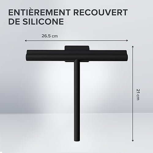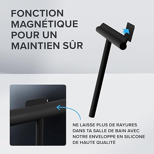 ovimar raclette de Douche Tomma | magnétique | sans percer | en Silicone avec Noyau en Acier | Noir | 23,5 cm | pour la paroi de Douche, Le carrelage ou même la fenêtre | avec Support magnétique