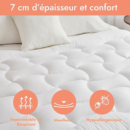 Surmatelas BéBé ConforProtect 2 en 1 | Alèse et protège-Matelas intégrés | 7 cm de Confort | Imperméable, Moelleux, aéré, hypoallergénique (60x120 cm)