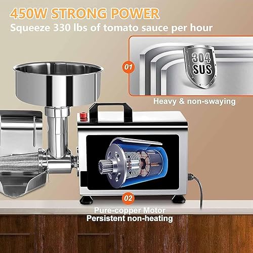 Presse à Tomates électrique 450 W,Machine électrique Passoire Tomates,Presse-Agrumes à Confitures Et Sauces En Acier Inoxydable, Fraiseuse à Tomates,Presse-Fruits,220V