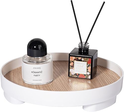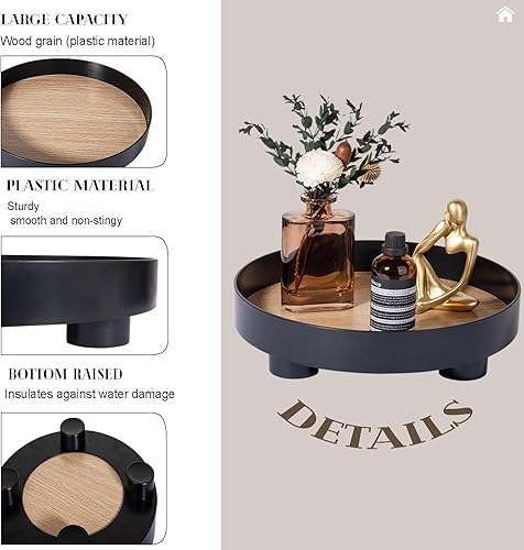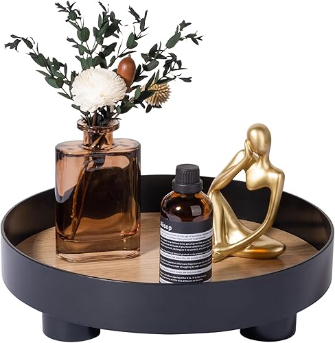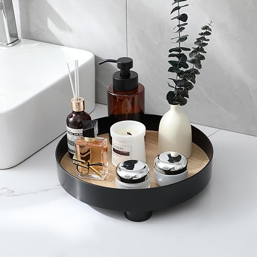 Plateau Rond décoratif pour Salle de Bain, Plateau de Parfum avec Socle en Bois pour décoration de Commode, Noir