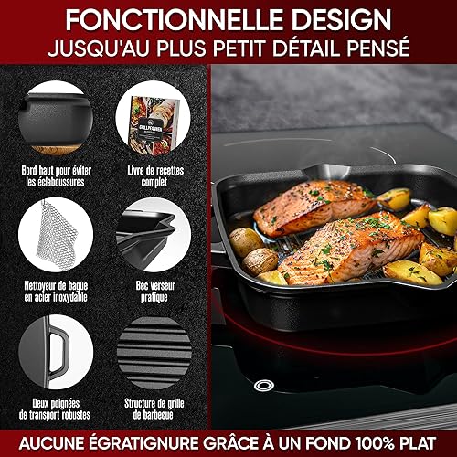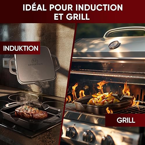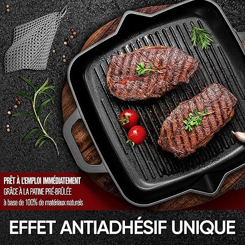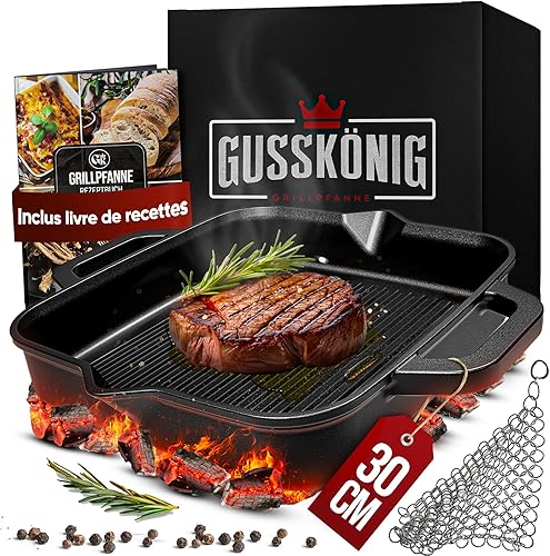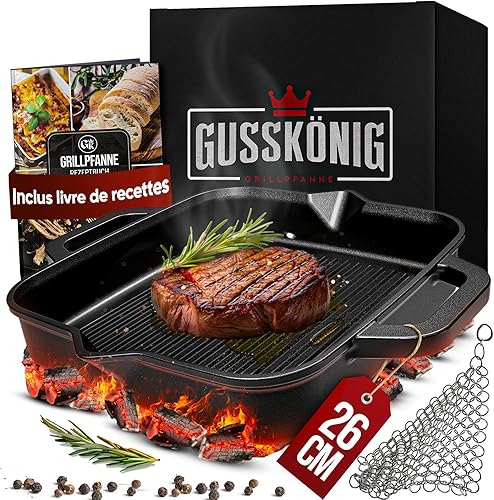 Gusskönig Poele en Fonte 26cm - Poele Fonte Naturelle - Poele Fonte Induction - Poele Grill Fonte - Cast Iron Pan - Poêle en Fonte Induction