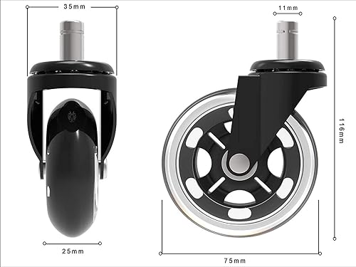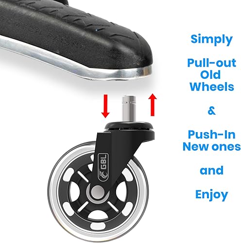 GBL - Lot de 5 Roulettes pour Chaise de Bureau - Roulette Pivotante avec Roue Protège Parquet en Caoutchouc - ne Marque pas les Sols -avec Roulement Silencieux