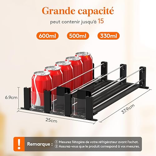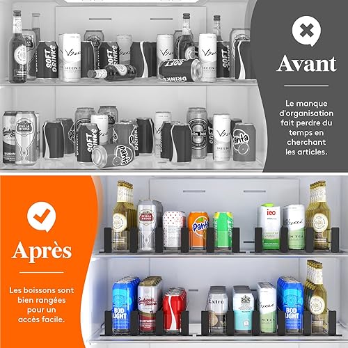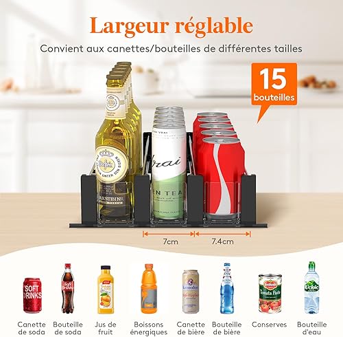 Lifewit Distributeur de Boissons pour Réfrigérateur, Organisateur Frigo avec Glissière Ajustable, Rangement de Bouteilles d'Eau, de Bière, et de Boissons Gazeuses, Peut contenir jusqu'à 25 Cans