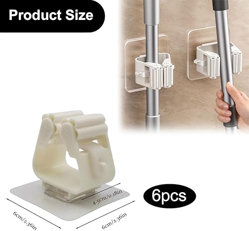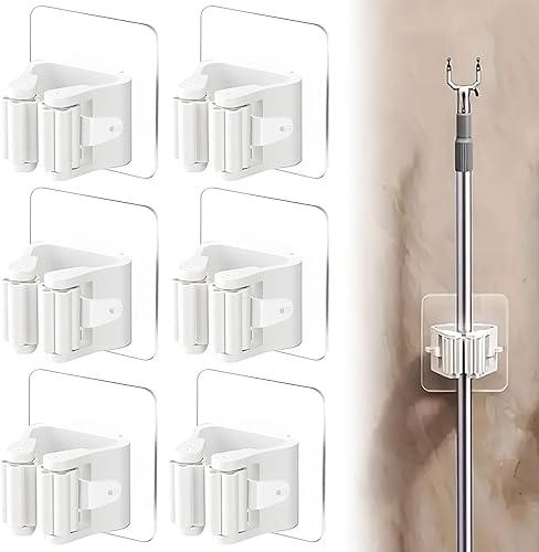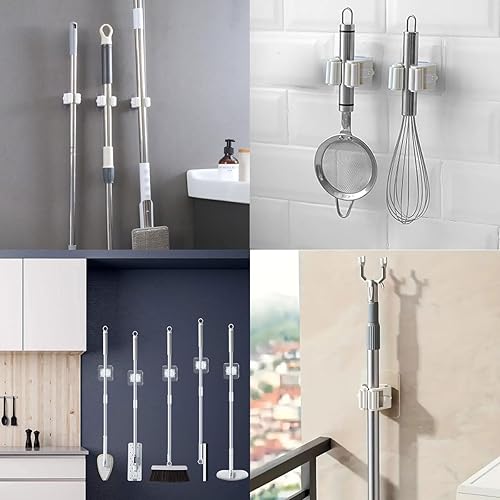Accroche Balai Mural,6pcs Porte Balais Mural,Support Mural Pour Balai,Support De Vadrouille,Porte Balai Mural Auto-adhésif,Range Balai Mural,Porte Balais Mural Sans Percage,pour Porte Salle de Bain