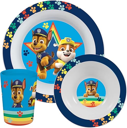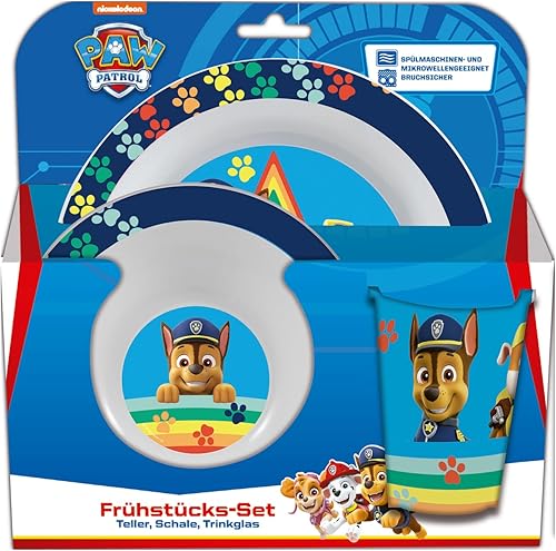 PAW PATROL Set de Petit-déjeuner, Set de Vaisselle 3 pièces avec Assiette, Bol et gobelet, Vaisselle pour Enfants en Plastique, Passe au Lave-Vaisselle/Micro-Ondes