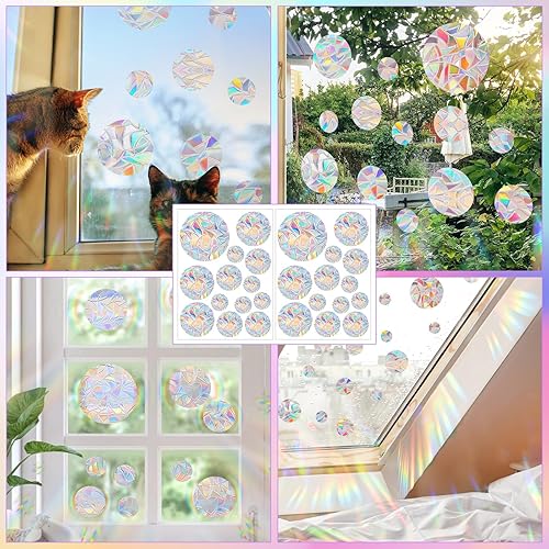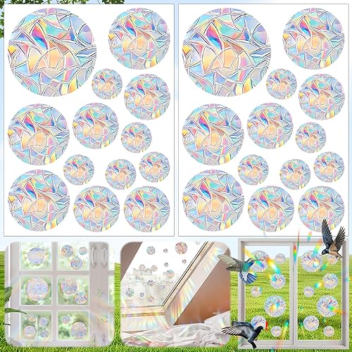 Weploda 26 Pièces Anti Collision Arc-en-Ciel Fenêtre, PVC Prism Autocollant en Verre, Fenêtre Suncatcher Sticker, Prisme Autocollant en Verre pour Décoration et Prévenir les Impacts D'oiseaux