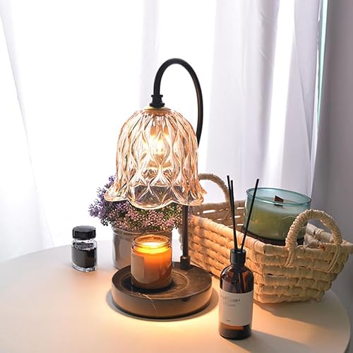 Aromatique Lampe chauffe-bougie en forme de tulipe avec minuterie et 2 ampoules chauffe-bougie électrique en verre de cristal avec base en marbre lampe à bougie aromatique lampe de table Candle Warmer