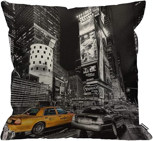 HGOD DESIGNS Housse de coussin New York Fifth Avenue Night City jaune taxi voiture, taie d'oreiller décorative pour homme/femme, salon, chambre à coucher, canapé, chaise, 45 x 45 cm