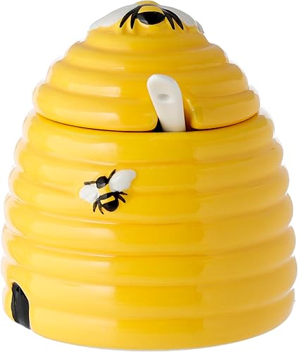 Puckator Pot à miel en céramique en forme de ruche avec couvercle et cuillère
