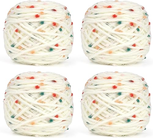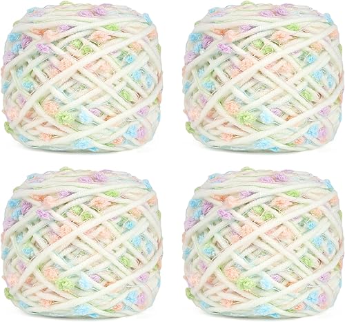 Coopay Chic Laine à Crocheter, 4x50g Pelote de Laine à Tricoter Esthétique avec Boules Arc-en-Ciel, Doux Fil Coton pour Crochet Tricot, Fil à Crocheter pour Écharpe/Bonnet, Laine Tricot Boule Tulipe