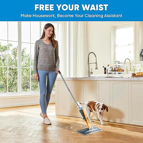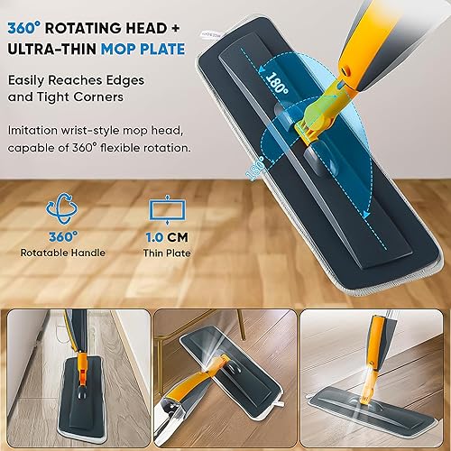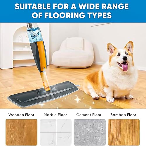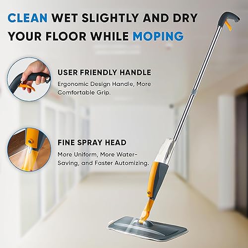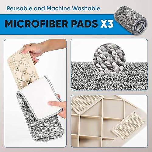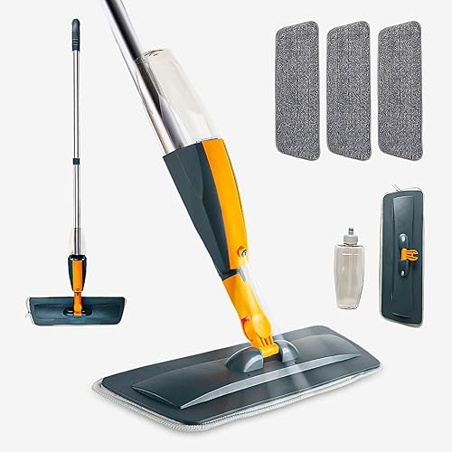 Balai Serpillère Spray avec Réservoir Rechargeable, Pulvérisateur à Gâchette, 3 Tampons Microfibres Lavables, Tête Pivotante 360° – pour Sols en Bois, Carrelage, Vinyle, Stratifié