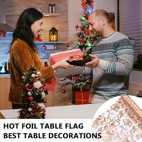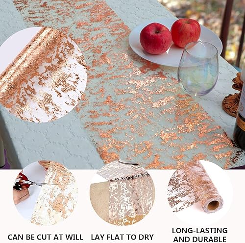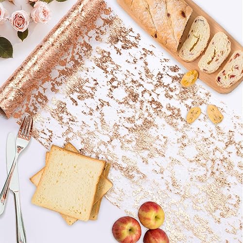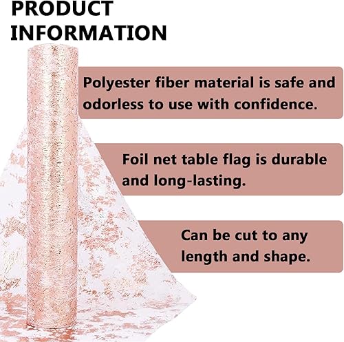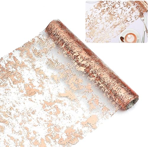 LINGJIA Chemin de Table Rose, 28*900cm Décoration Table Noel, Décoration de Nappe, Drapeaux Table Or Rose, Nappes de Baptême Or Pailleté, Serviettes en Tulle Festivals, Anniversaires, Fêtes, Mariages