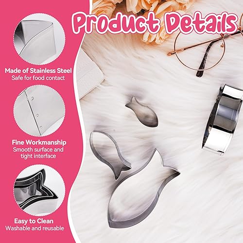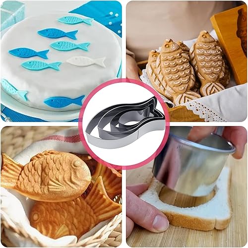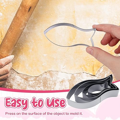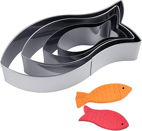 4 Pièces Moule en Acier Inoxydable en Forme de Poisson, Emporte-Pièces Réutilisable à Nageoire, Emporte-Pièces en Forme de Poisson, Silver Moule à Biscuits pour Communion, Confirmation, Baptême